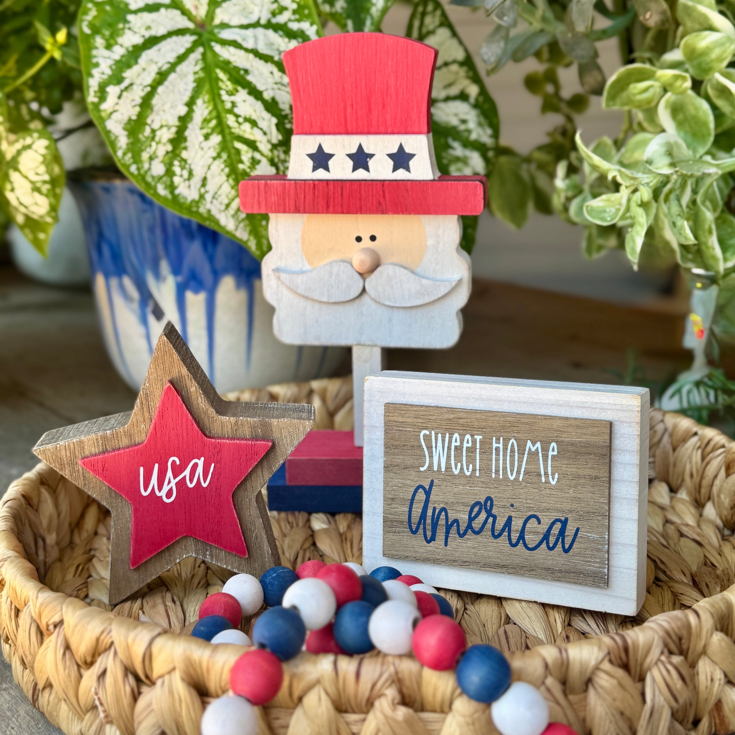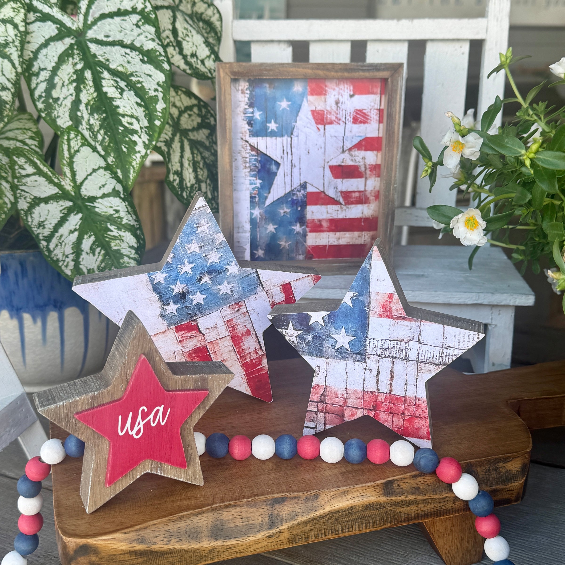 Vintage Washed Wood Star Cutout with 3D Red Washed Wood Layer and Pure White Text.