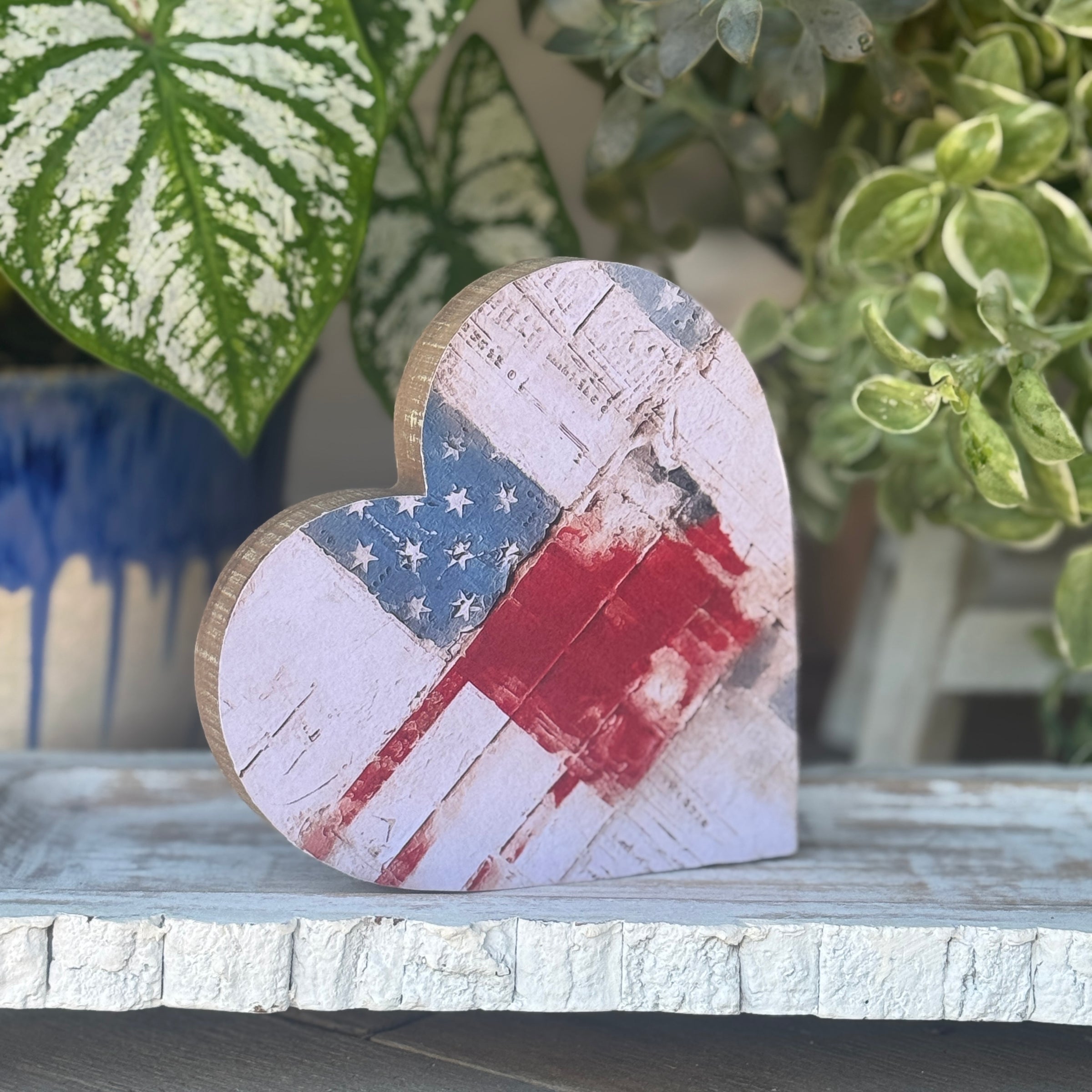 Vintage Washed Heart Cutout with Stars and Stripes Collage Artwork Print attached to front