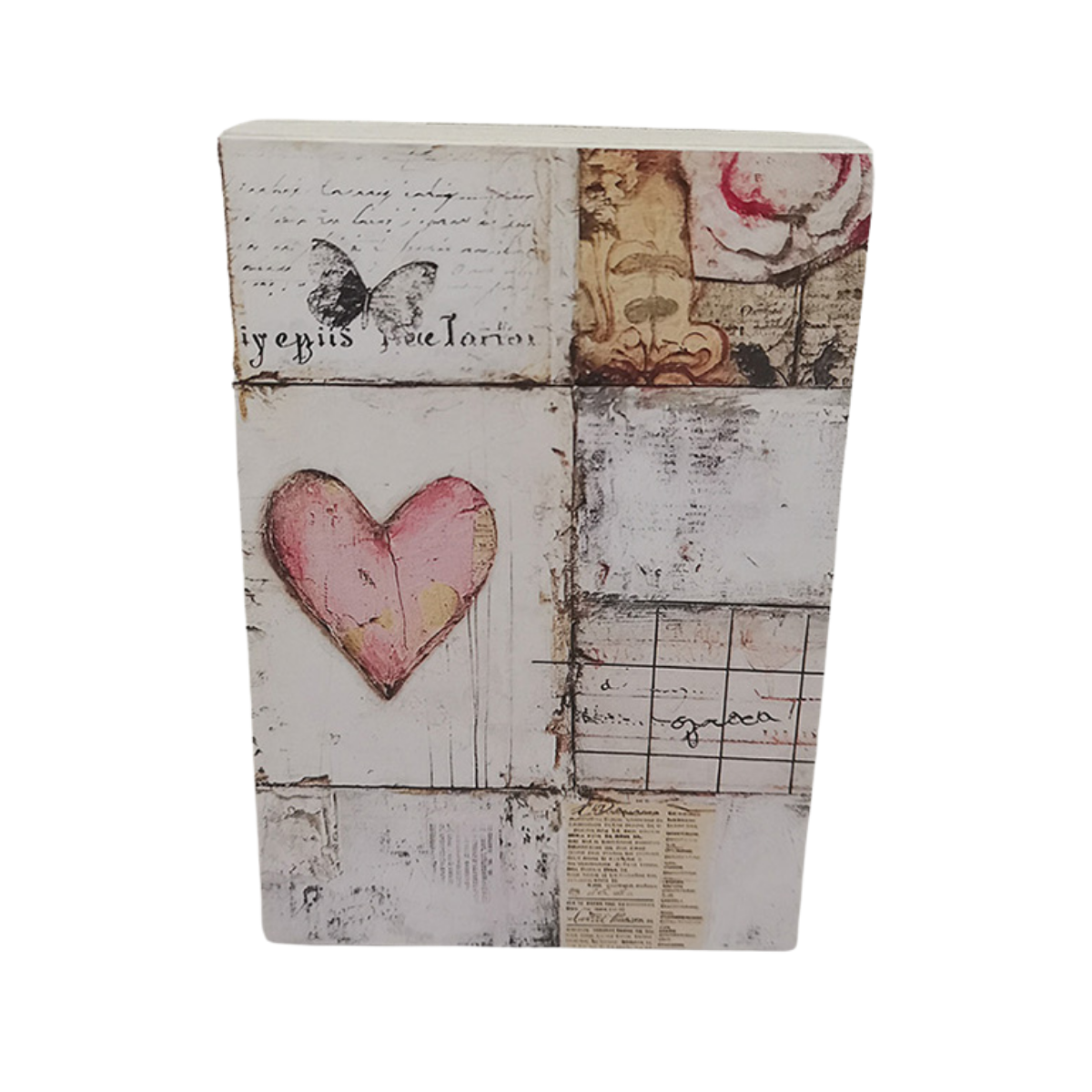 White Washed Wood Block with White Heart Artwork Print Attached to Front