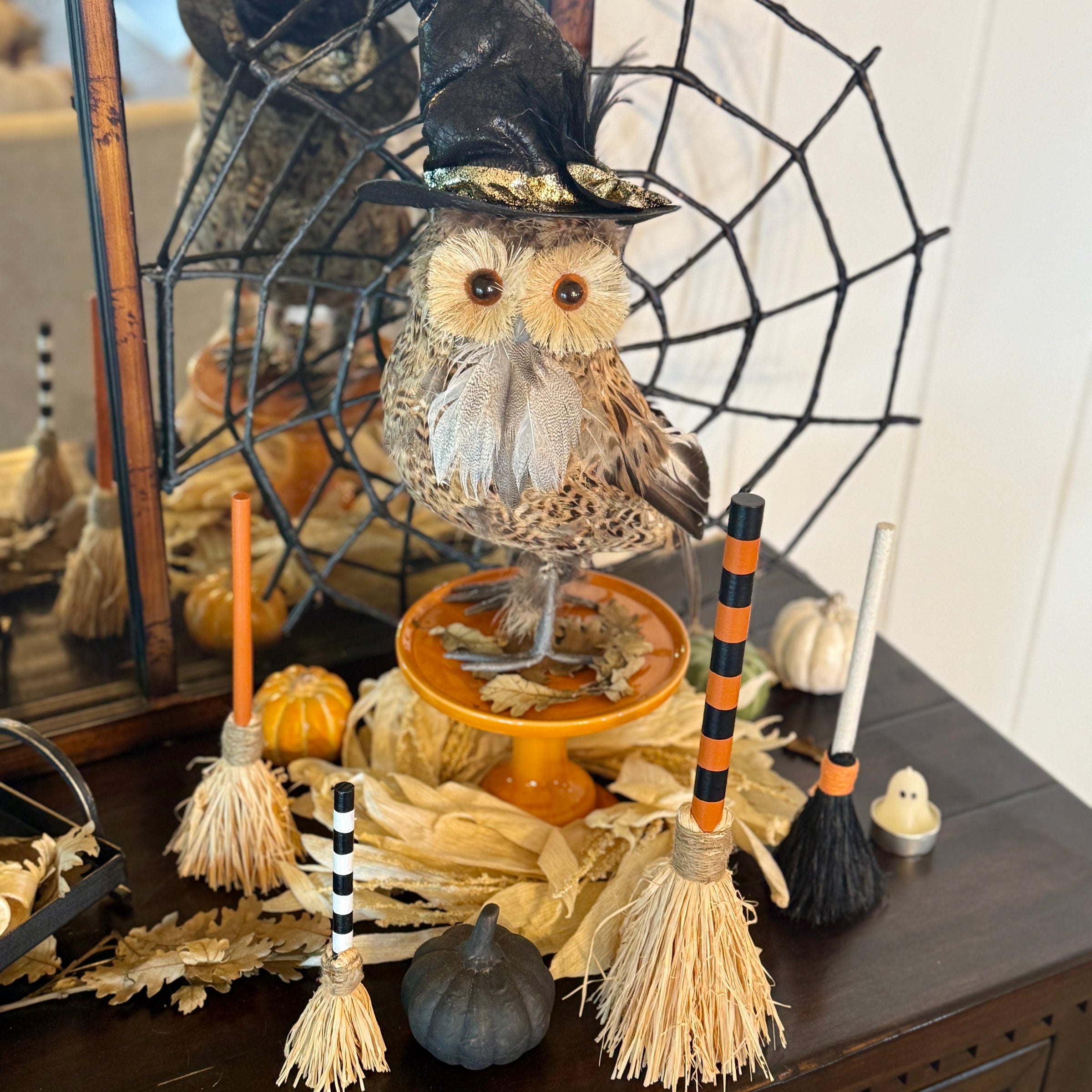 Black and White Painted Striped Broomstick with Jute Wrapped Around Natural Thin Raffia Bristles