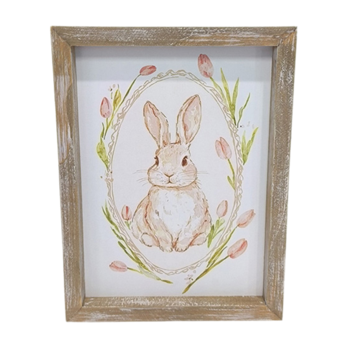 Light Barnwood Frame with Bunny in Floral Wreath Artwork Print Inside