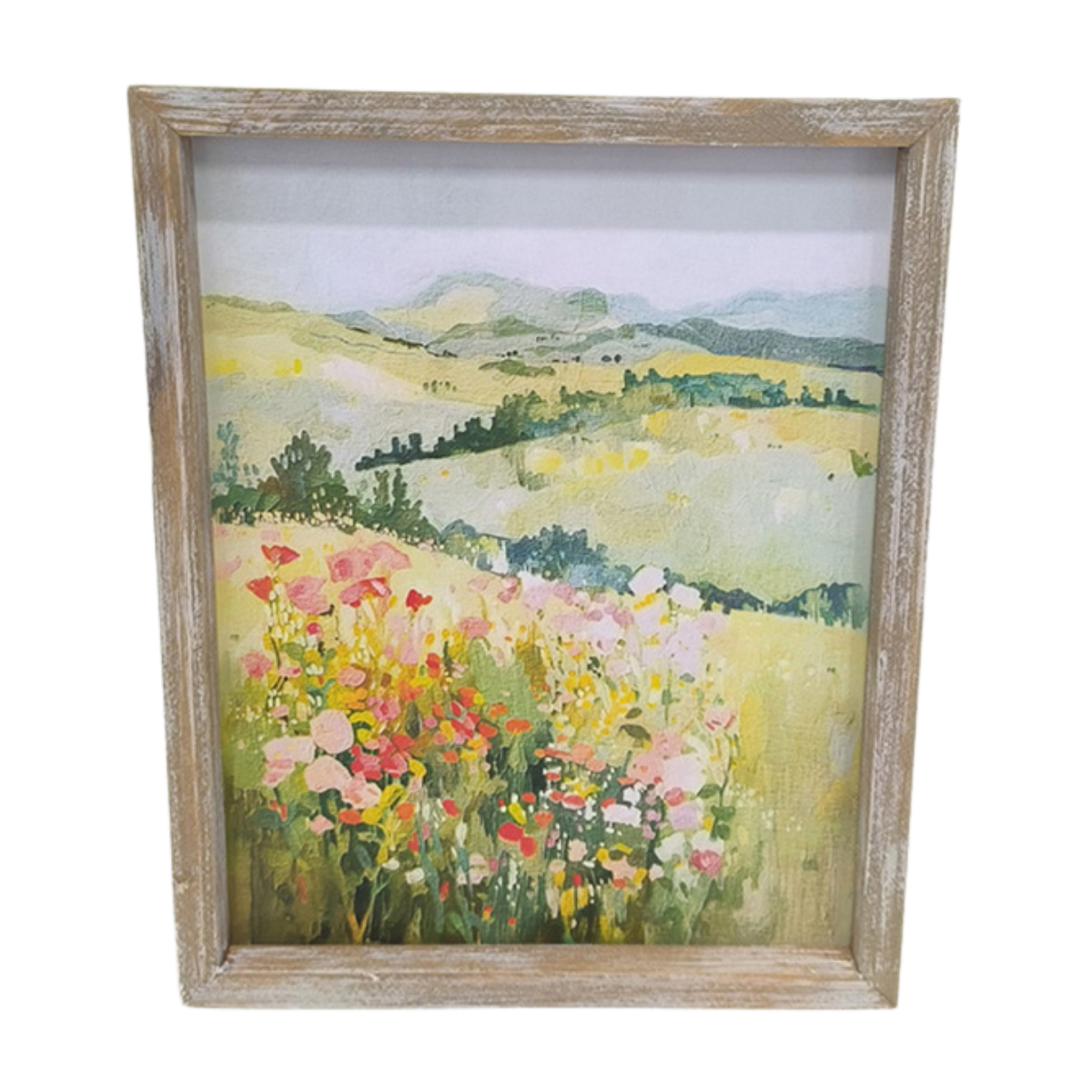 Light Barnwood Frame with Flower Field Artwork Print Inside