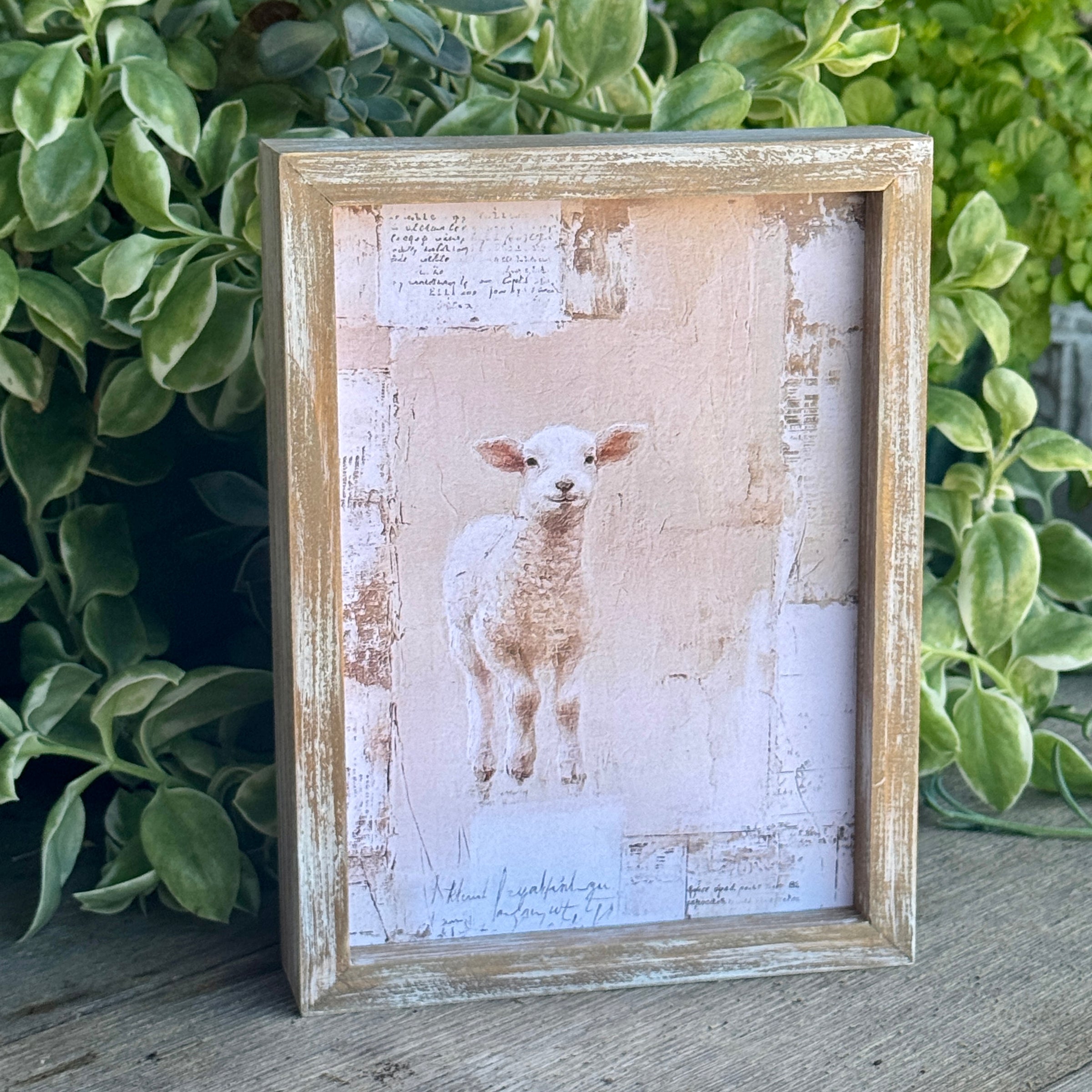 Light Barnwood Frame with Lamb Collage Artwork Print Inside