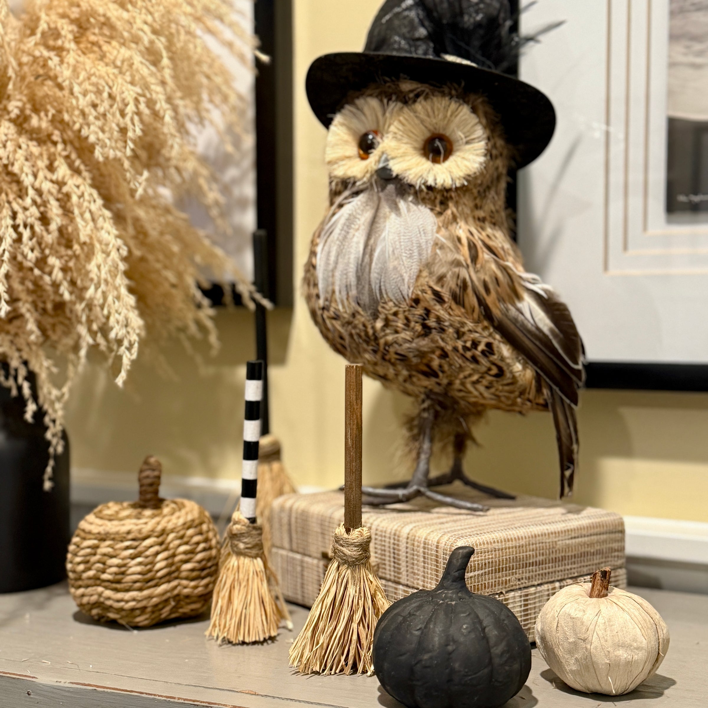 Wooden Broomstick with Jute Wrapped Around Thin Natural Raffia Bristles