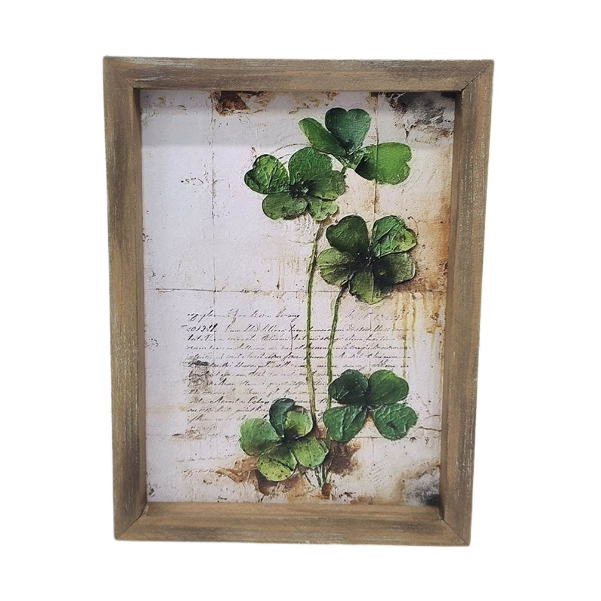 Vintage Washed Wood Framed Sign with Shamrocks Artwork Print Inside