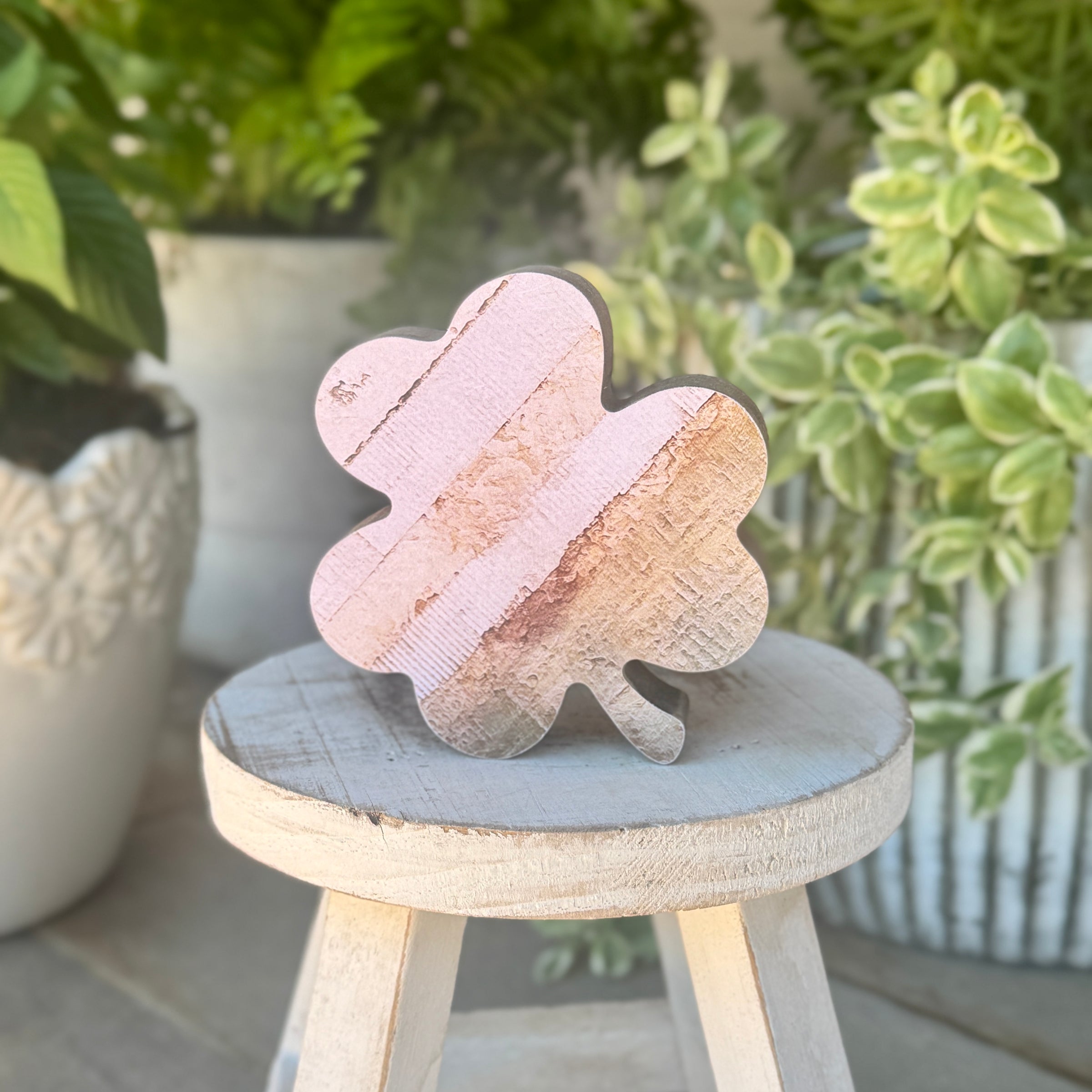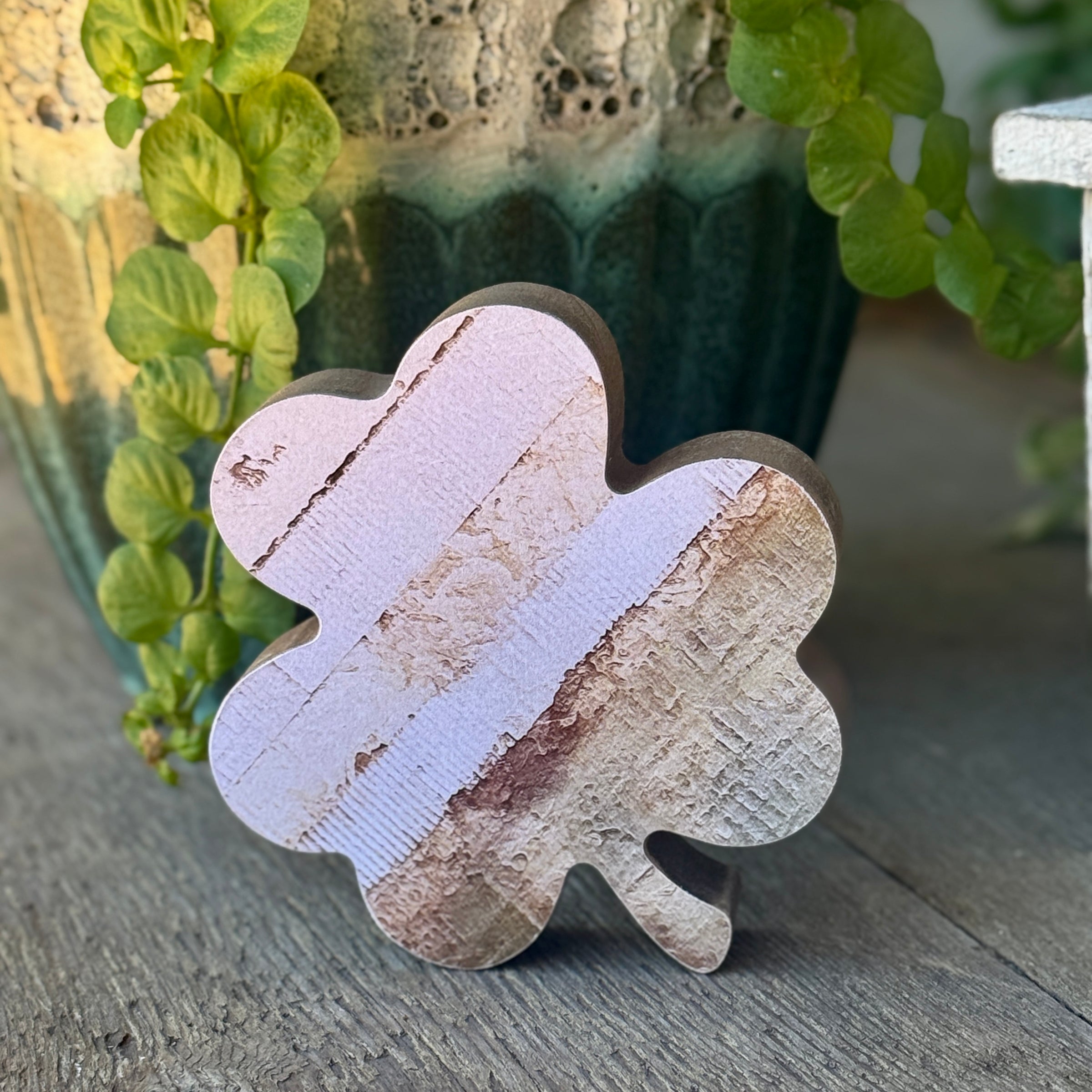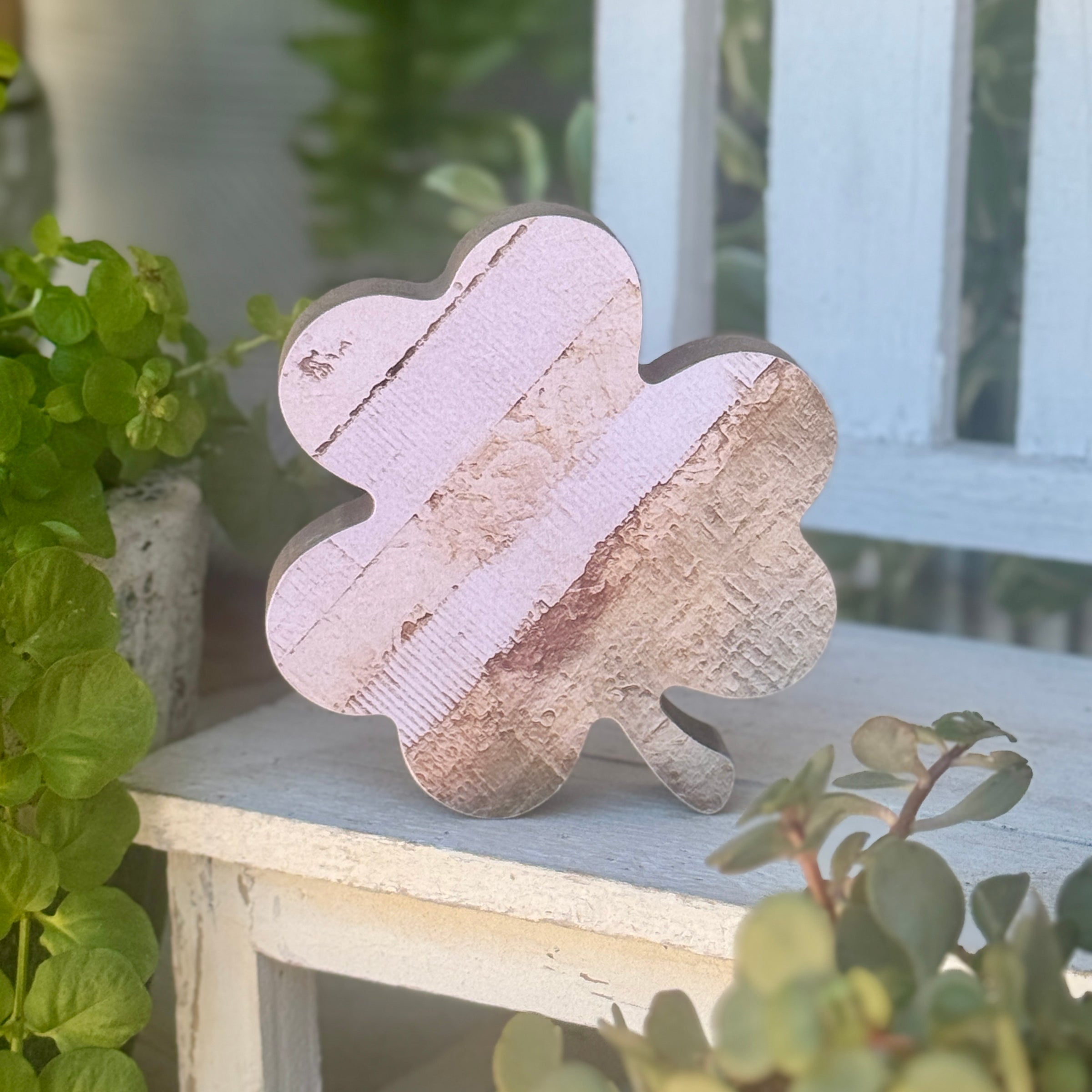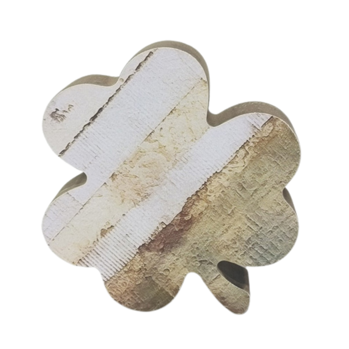Vintage Washed Wood Shamrock Cutout with Irish Collage Artwork Print Attached to Front
