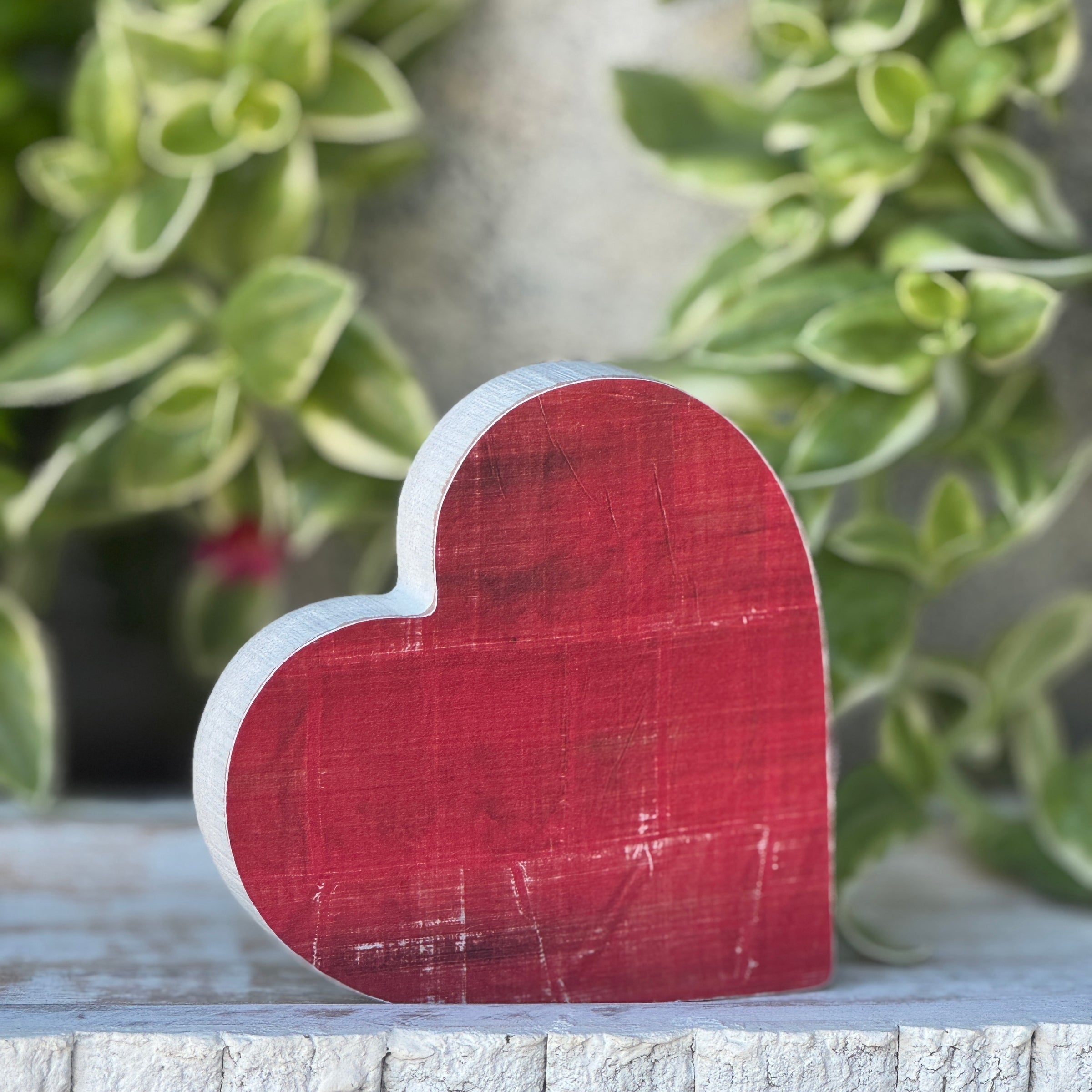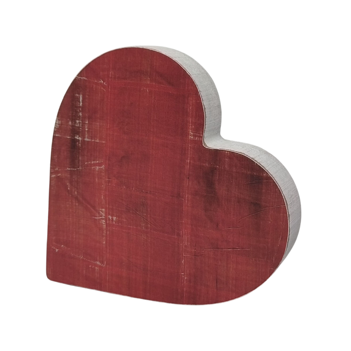 White Washed Wood Heart Cutout with Collage Artwork Print attached to Front